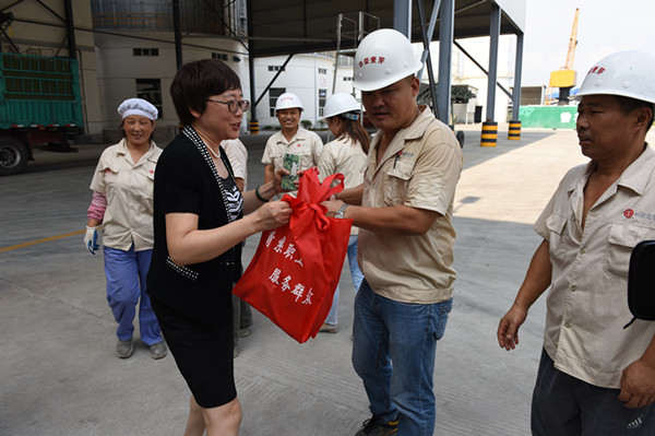 连日来,海陵气温居高不下。7月25日下午,海陵区副区长孙佳玲、海陵区总工会副主席沈陵一行专程来到城北物流园区泰州市华荣麦芽有限公司看望慰问在高温下坚守岗位的一线职工,向他们送去“清凉”,送去党和政府的关怀。